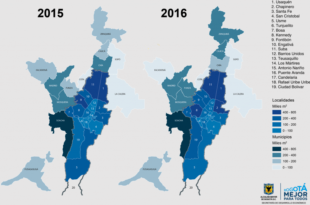 Published in: Boletines En 2016, Usaquén incrementó en 298.968 metros cuadrados, el área nueva en proceso de construcción Author Observatorio Economico Published on: 27 de mayo de 2017 Destacados: En Kennedy el destino que más creció en área nueva en proceso fue Comercio.En Zipaquirá el área nueva en proceso se incrementó en 101.856 m2.En Funza el destino bodegas, pasó de 1.284 m2 en 2015 a 153.192m2 en 2016.En Usaquén las viviendas No VIS en proceso pasaron de 8.390 a 5.670 unidades en 2016. Archivo de descarga: Boletín construcciÓn regional No.9 Temas: Construcción regional. Tipo de Publicación: Boletines