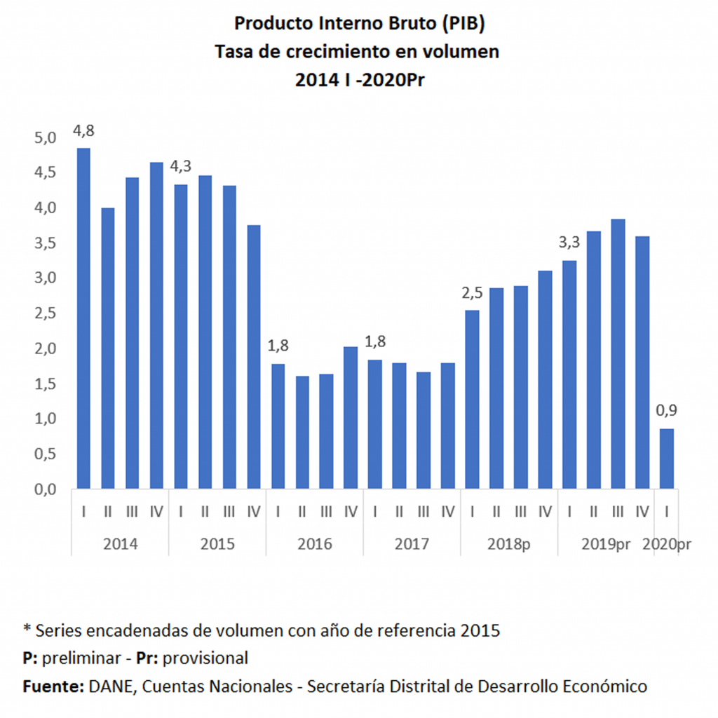 PIB de Bogotá crece 0,9% en el primer trimestre de 2020