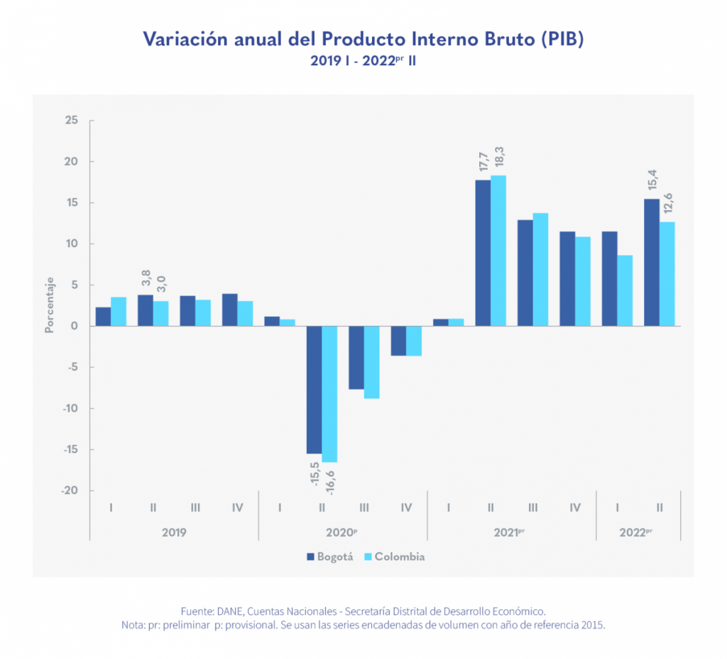 ¡Continúa el crecimiento en Bogotá! El PIB en el II trimestre de 2022pr crece 15,4 %