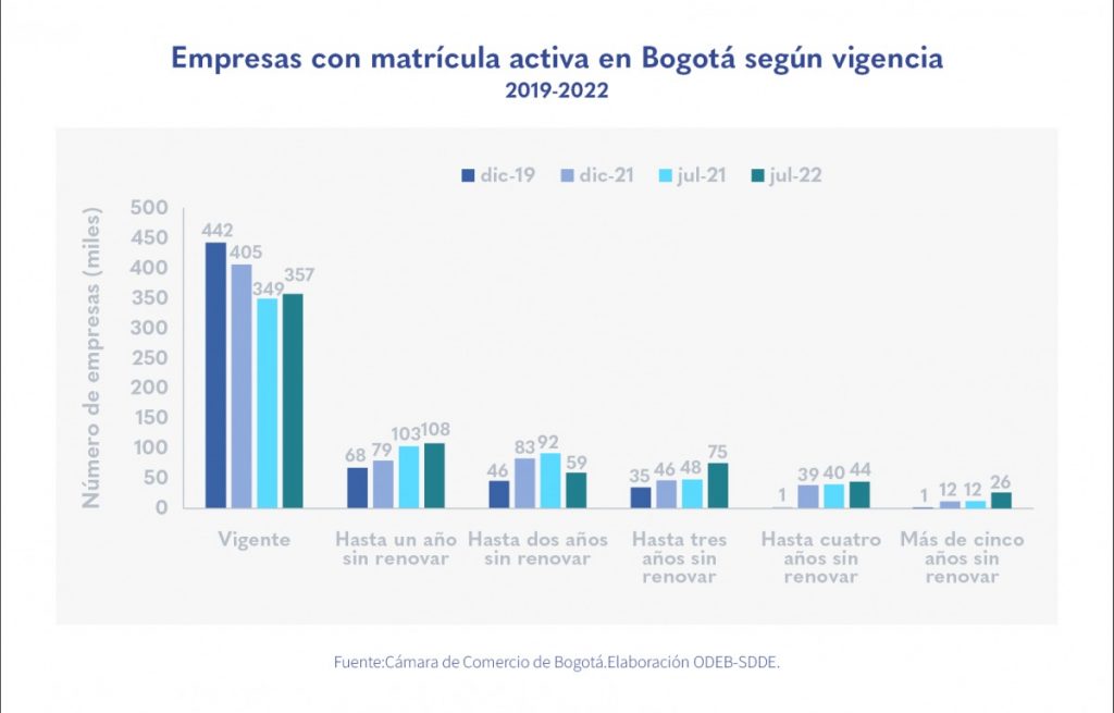 El número de empresas con matricula mercantil vigente en Bogotá, incrementó 2,3 % en julio