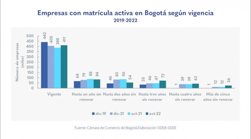 En octubre de 2022, las empresas con matrícula mercantil vigente crecieron 6,1 %