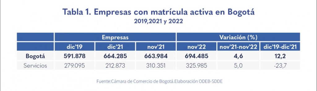 Las localidades que más contribuyeron al crecimiento del tejido empresarial del sector servicios en noviembre del 2022 fueron: Chapinero, Suba y Usaquén.