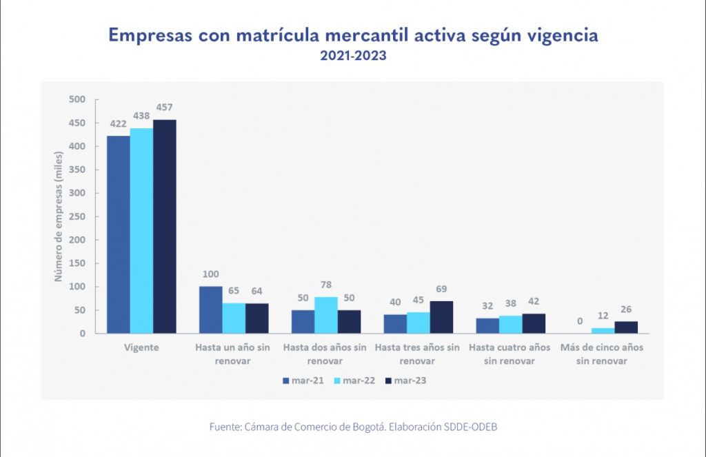 • En marzo de 2023, el 64,6 % del tejido empresarial correspondió a empresas con matrícula mercantil activa y vigente.