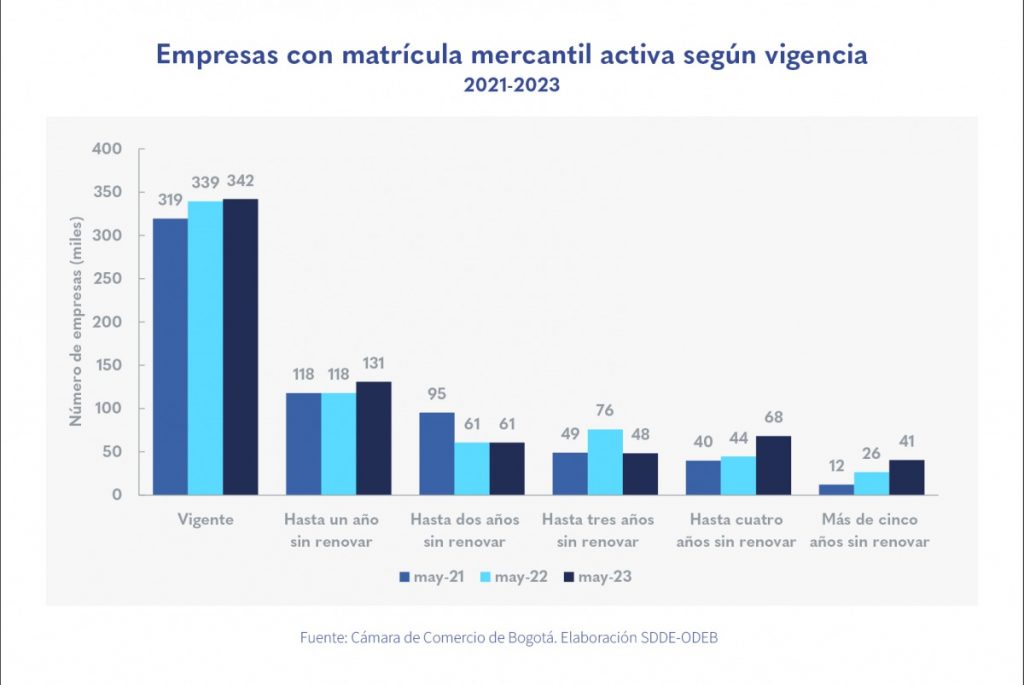 En mayo de 2023, el 49,5 % del tejido empresarial correspondió a empresas con matrícula mercantil activa y vigente.