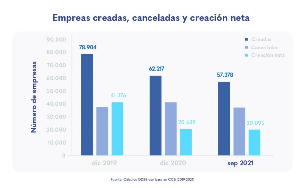 Entre enero y septiembre de 2021, en la capital del país se crearon 57.378 empresas, mientras que en el mismo período se cancelaron 37.283.