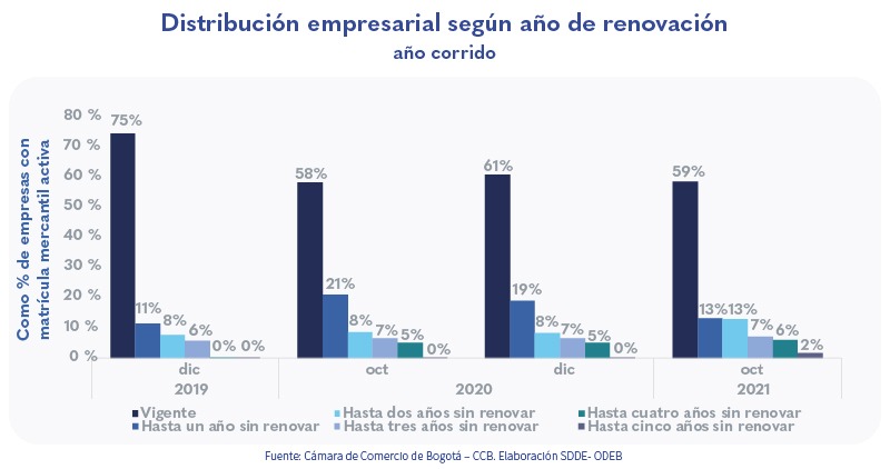 • A octubre de 2021, la ciudad registró 387.765 empresas con matrícula vigente, lo que equivale al 58,7 % del total de empresas con matrícula activa en la ciudad.