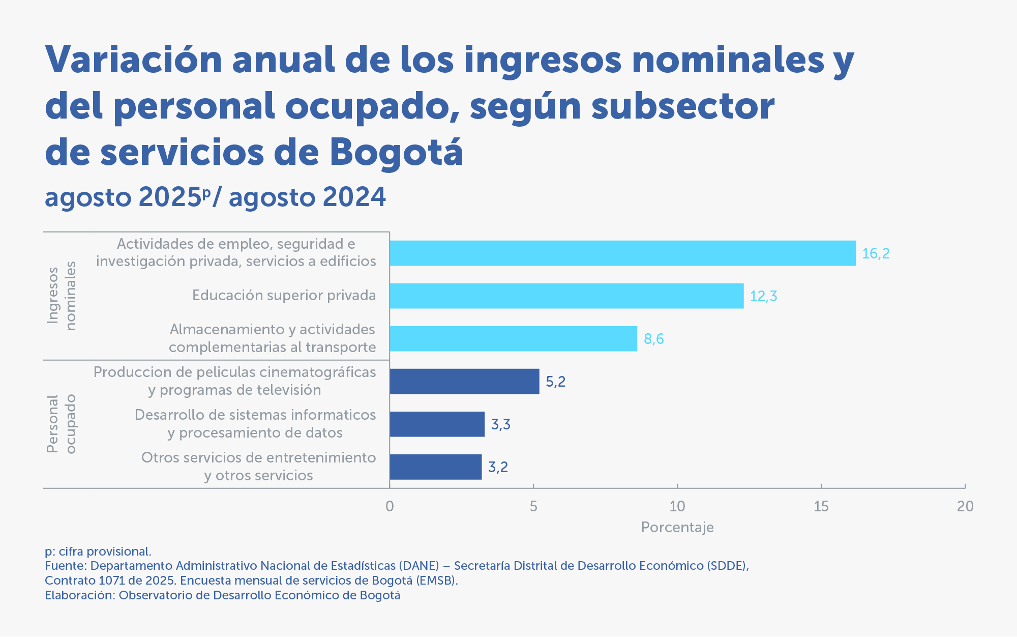 Durante el mes de referencia, trece de estas actividades incrementaron los salarios por encima de la inflación anual de Bogotá, que fue del 5,35 %.