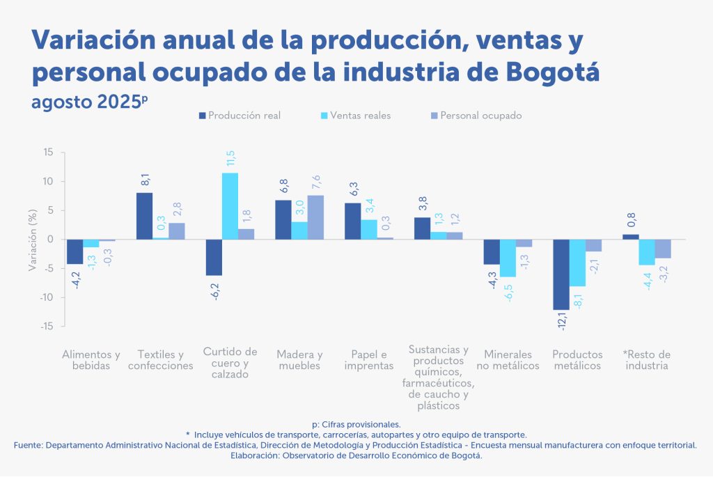 1 de diciembre de 2025 Boletines En septiembre de 2025, crecieron la producción, las ventas y el empleo de la industria en Bogotá