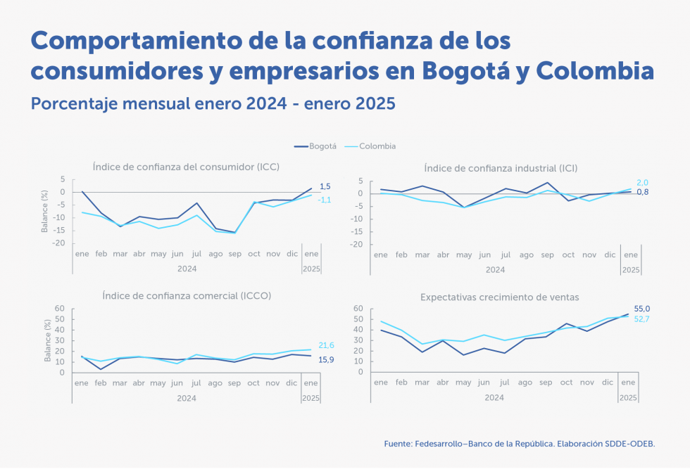 En enero de 2025, aumentaron la confianza del consumidor y el optimismo económico en Bogotá