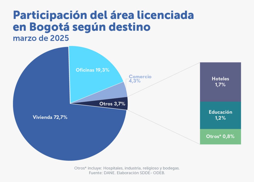 • Las importaciones de insumos para la construcción en Bogotá aumentaron un 43,3 %. • El área licenciada para vivienda Vis alcanzó los 87,2 mil metros cuadrados (m2) para el mes de análisis. • El sector de la construcción en Bogotá empleó a 254,6 mil personas en el trimestre móvil enero – marzo de 2025.