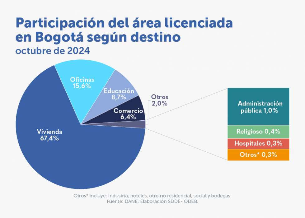 En octubre de 2024 disminuyó el área licenciada con destino a vivienda en Bogotá