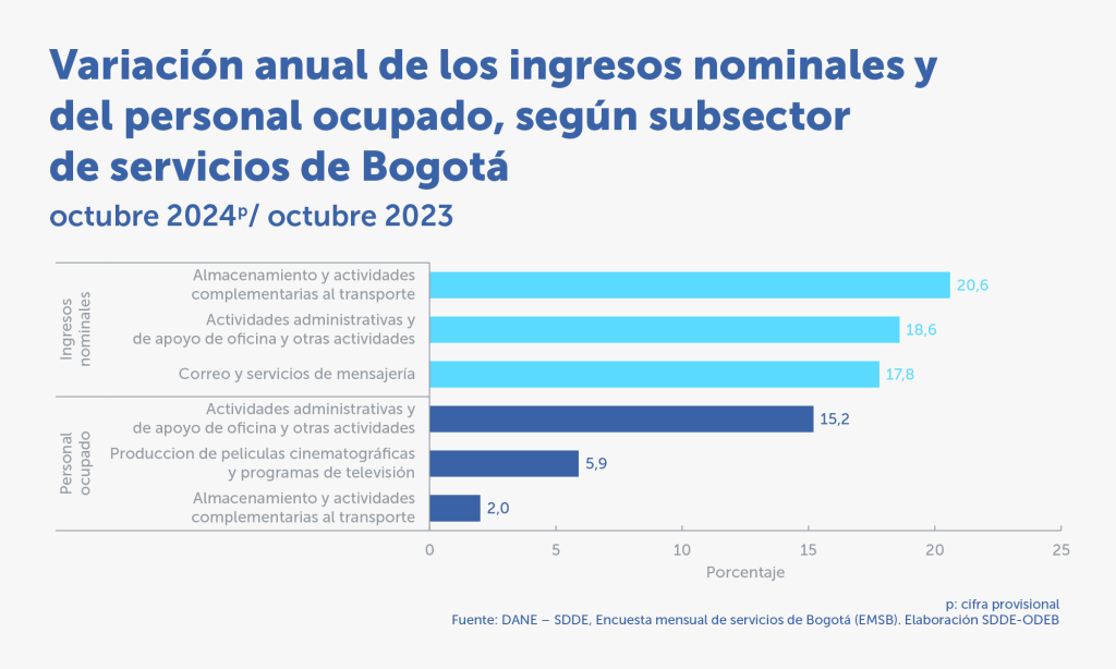 • En octubre de 2024, quince de las dieciocho actividades de servicios analizadas registraron un aumento en los ingresos nominales.