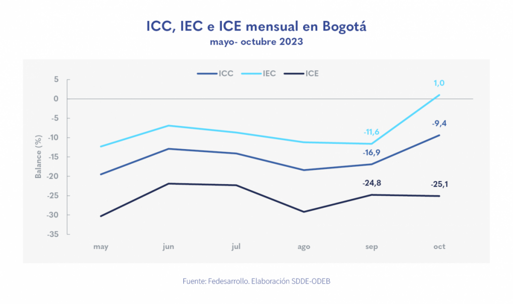 • En octubre, el Índice de confianza de los consumidores (ICC) en Bogotá mejoró en 7,5 puntos porcentuales (p.p.) respecto a septiembre de 2023.