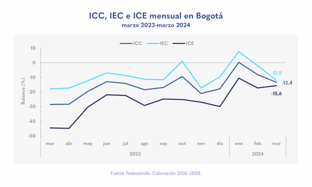 Published in: Boletines En marzo de 2024, los muebles y enseres impulsaron las expectativas de ventas Author Observatorio Economico Published on: 5 de junio de 2024 Destacados: En marzo, el Índice de confianza de los consumidores (ICC) en Bogotá y en Colombia disminuyó en 5,3 y 3,6 puntos porcentuales (p.p.), respectivamente. La disposición para compra1 de muebles y enseres aumentó en marzo. El Índice de confianza industrial (ICI) en Bogotá registró valores negativos en marzo. Archivo de descarga: Boletín expectativas No. 105 Temas:Expectativas Tipo de Publicación: Boletines