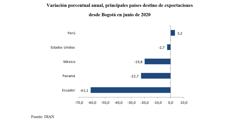 Published in: Boletines Decrecen las exportaciones desde Bogotá en junio en -20,6% Author Observatorio Economico Published on: 19 de agosto de 2020 Destacados: Para el mes de estudio, las exportaciones del grupo de manufacturas representaron el 60,8% del total, registrando una variación anual negativa de -30,1%. Archivo de descarga: Boletín exportaciones No. 109 Temas: Exportaciones Tipo de Publicación: Boletines