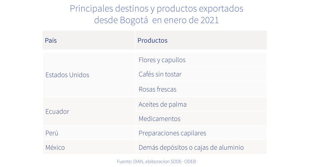 • Estados Unidos destino principal de las exportaciones desde Bogotá, con una participación significativa del 45,5 %