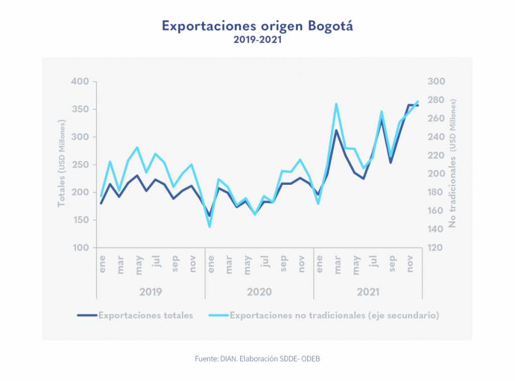 Exportaciones de Bogotá cerraron 2021 con un incremento de 44 %