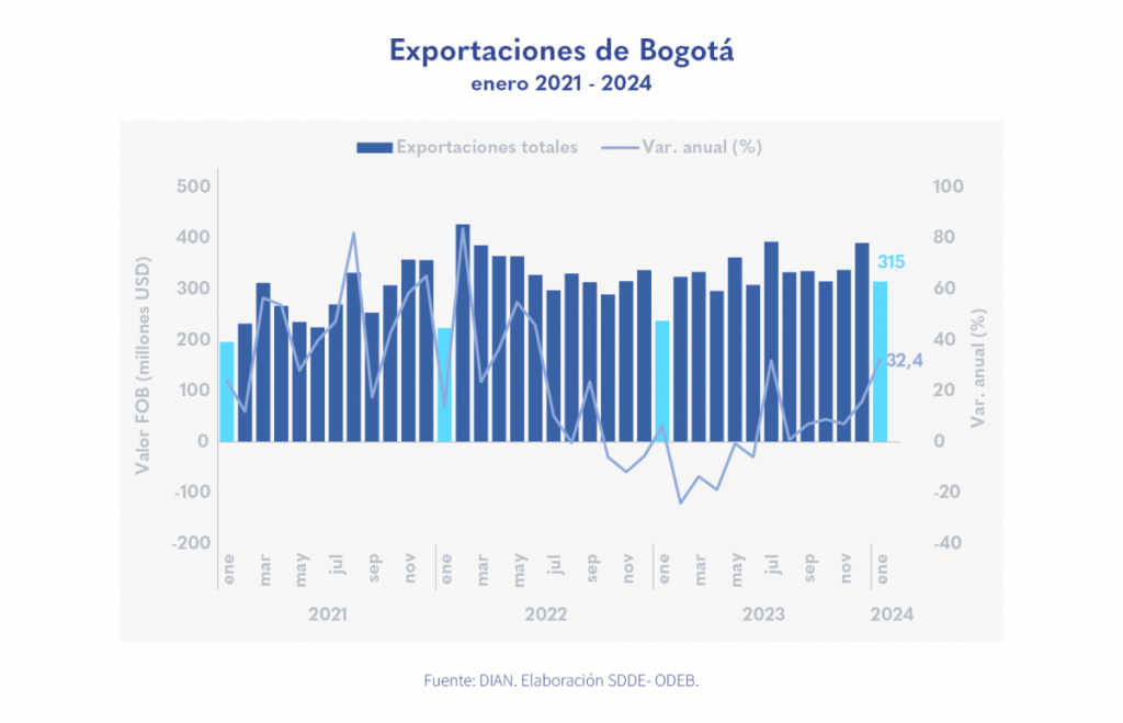 Exportaciones de Bogotá crecieron 32,4 % en enero de 2024