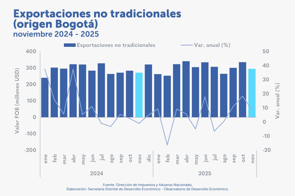 Exportaciones no tradicionales de Bogotá aumentaron 8,7 % en noviembre de 2025