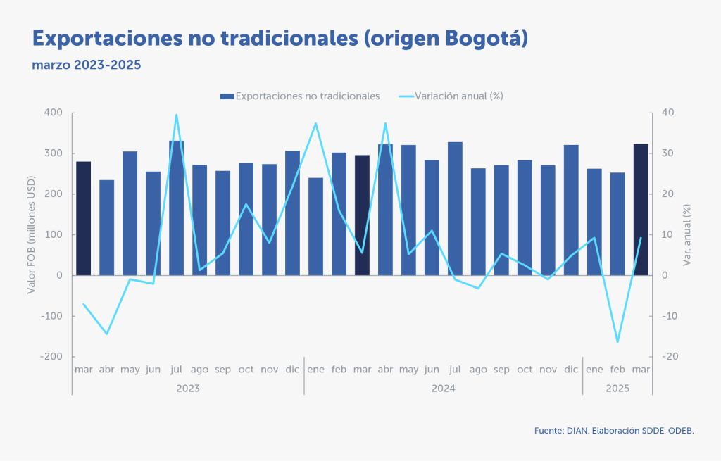Exportaciones no tradicionales de Bogotá crecieron 9,2 % en marzo de 2025