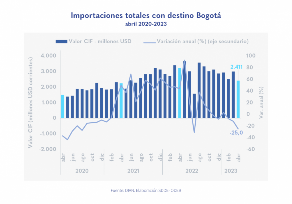 Las importaciones de Bogotá mantuvieron su tendencia negativa en abril de 2023
