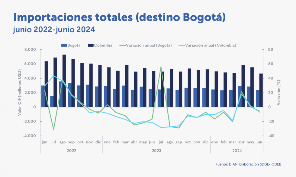 Las importaciones de Bogotá disminuyeron 5,5 % en junio de 2024