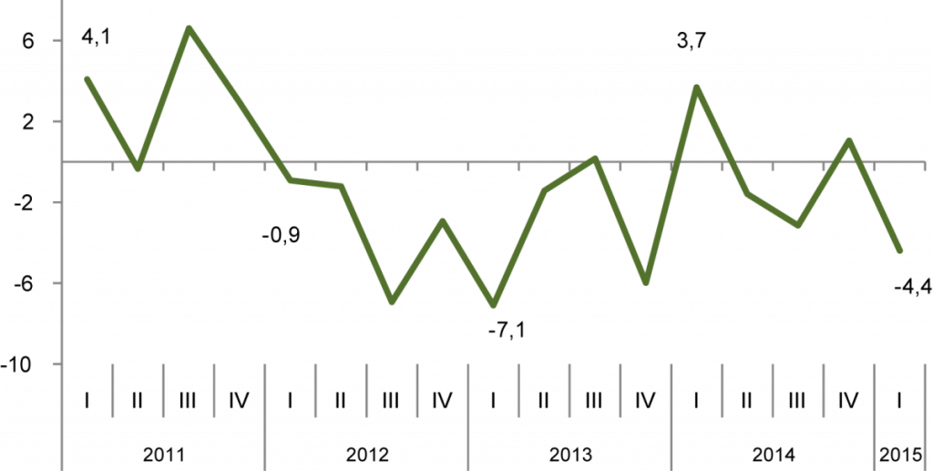 Producción industrial bogotana cae 4,4% en el primer trimestre de 2015