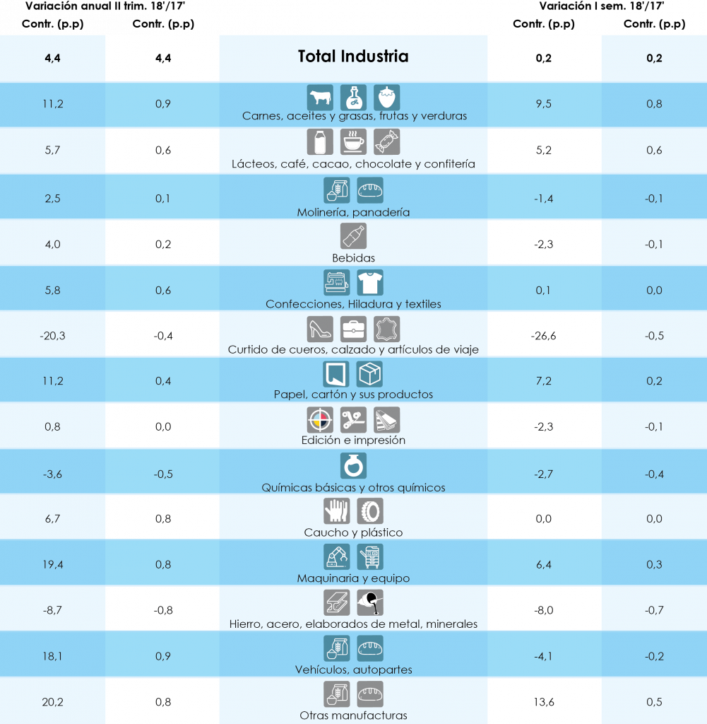 Published in: Boletines La producción industrial de Bogotá creció 4,4% durante el II trimestre de 2018 Author Observatorio Economico Published on: 24 de octubre de 2018 Destacados: Cuatro subsectores explican el 80% del crecimiento fabril II trimestre 2018vehículos y autopartesproductos cárnicos, aceites y frutas procesadasproductos de plástico y cauchomaquinaria y equipo. Archivo de descarga: Boletín INDUSTRIA No.32 Temas: Industria. Tipo de Publicación: Boletines