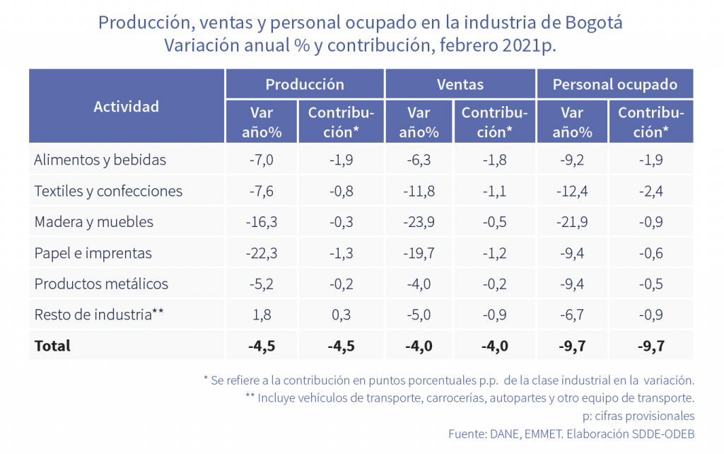 La variación anual de la producción real de la industria de la ciudad pasó de -9,7 % en enero a -4,5 % en febrero de 2021.