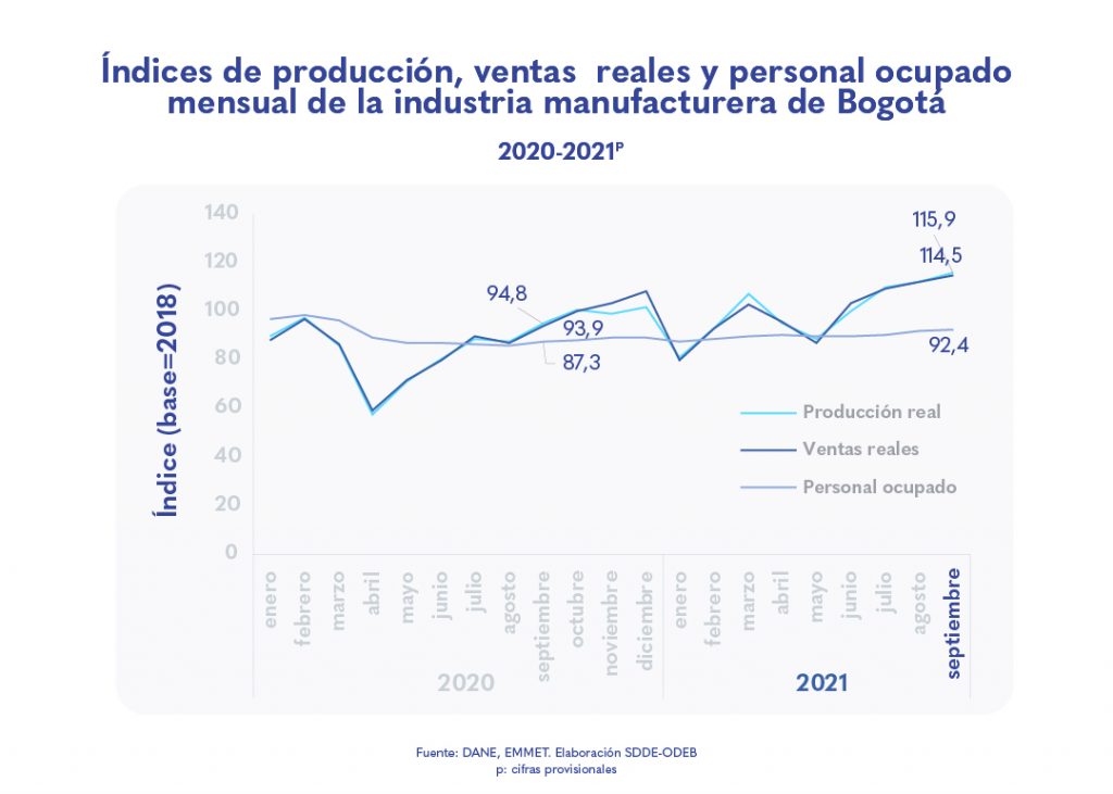 En septiembre la producción industrial bogotana aumentó 22,2 %, respecto al mismo periodo de 2020.
