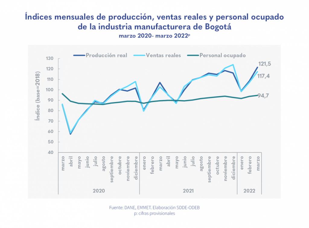 La industria de Bogotá contribuyó 1,3 puntos porcentuales (p.p.) al empleo de la industria nacional.