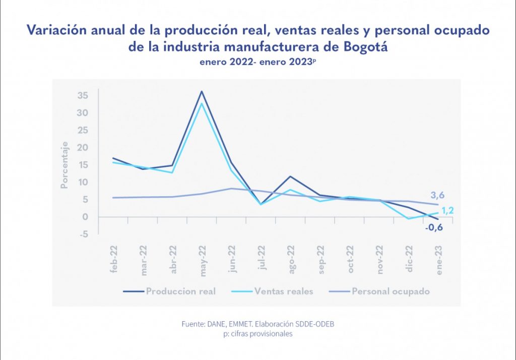 En enero de 2023, Bogotá fue la ciudad con mayor aporte al crecimiento del empleo industrial de la nación, con 0,8 puntos porcentuales (p.p.).