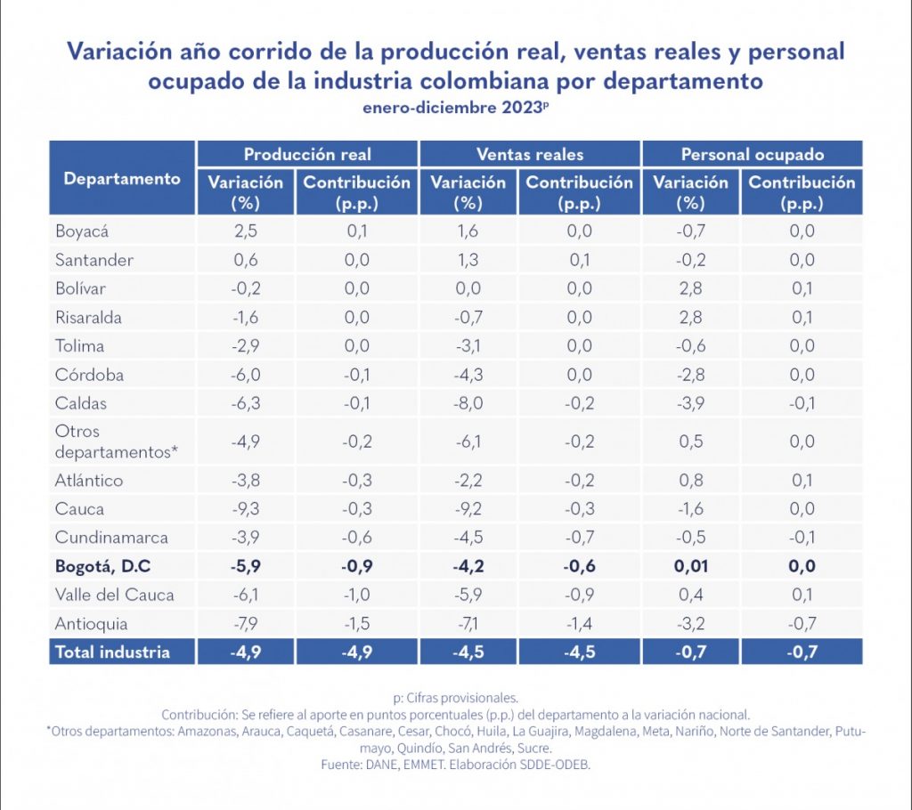 • Bogotá cerró el 2023 con una producción real y unas ventas reales negativas.