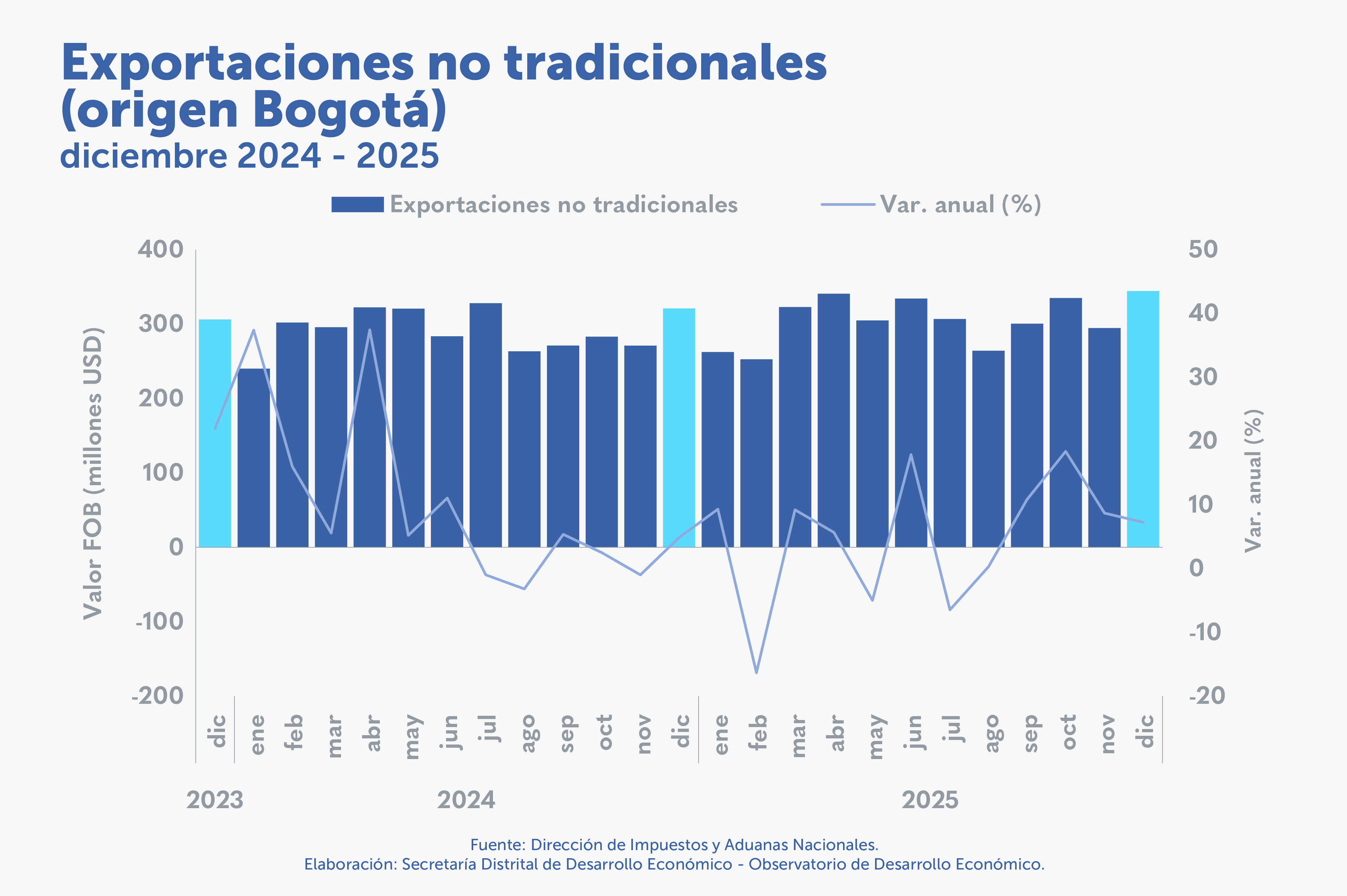 16 de febrero de 2026 Boletines Bogotá cerró 2025 con un crecimiento del 4,6 % en exportaciones no tradicionales