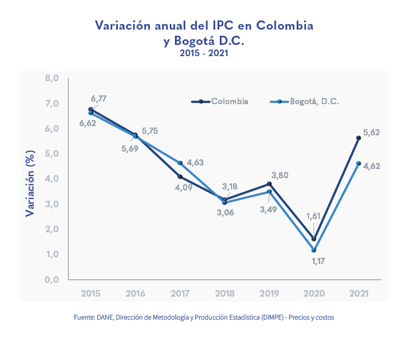 • Al finalizar el 2021, Bogotá tuvo una inflación de 4,62 %, siendo la más baja entre las principales ciudades del país.