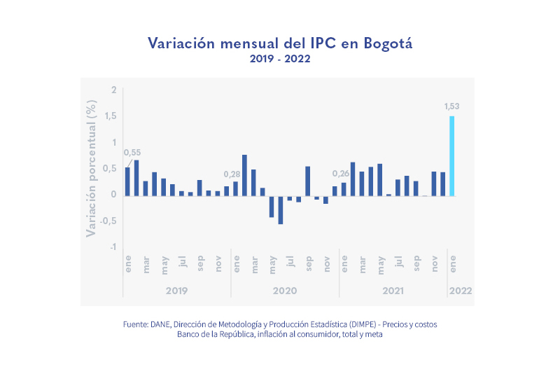 • La variación mensual del índice de precios al consumidor (IPC) en Bogotá fue de 1,53 % la más alta de los últimos tres comienzos de año.
