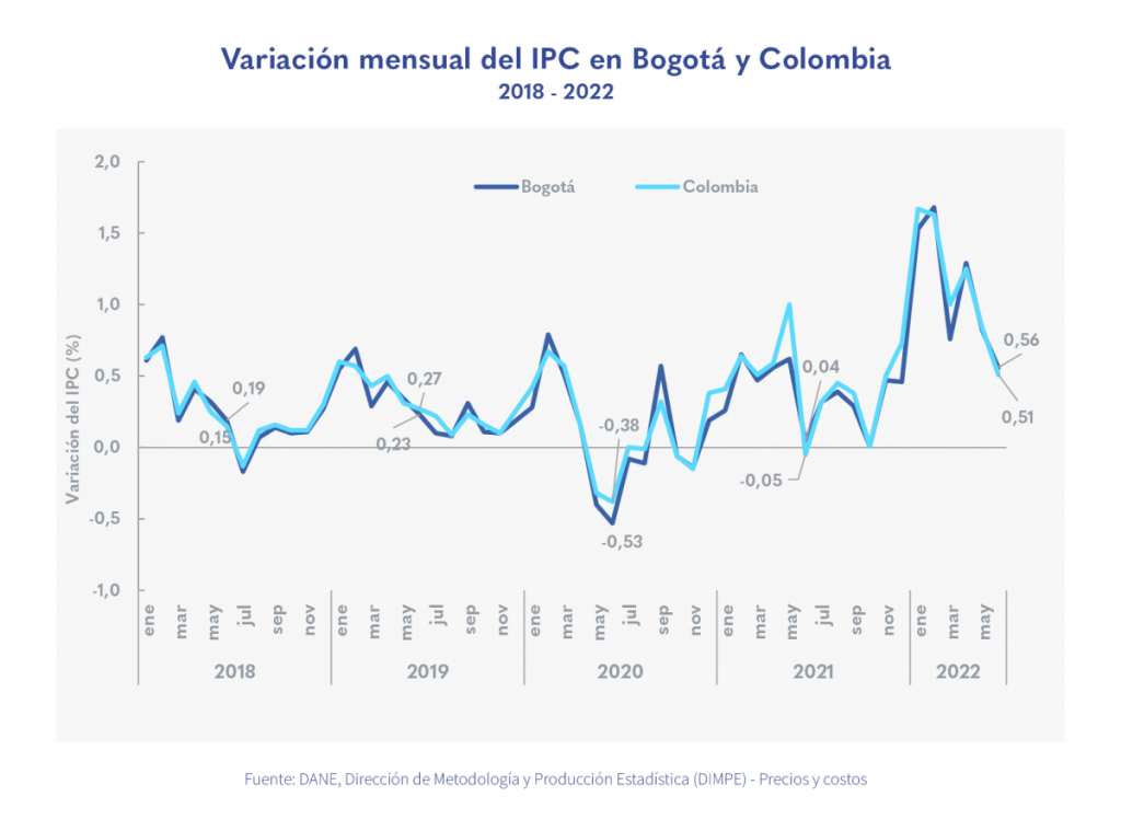 Bogotá se ubicó 0,05 puntos porcentuales (p.p.) por encima del nivel nacional (0,51 %).