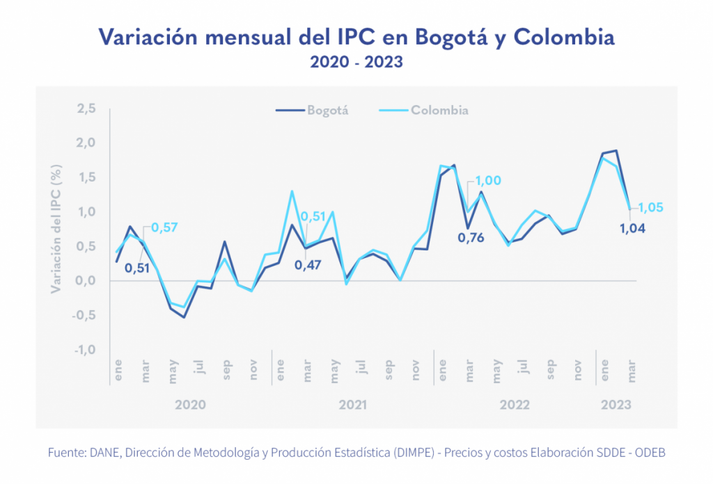 • La inflación año corrido enero-marzo de 2023 estuvo 1,86 p.p. por encima de la meta de largo plazo fijada por el Banco de la República.