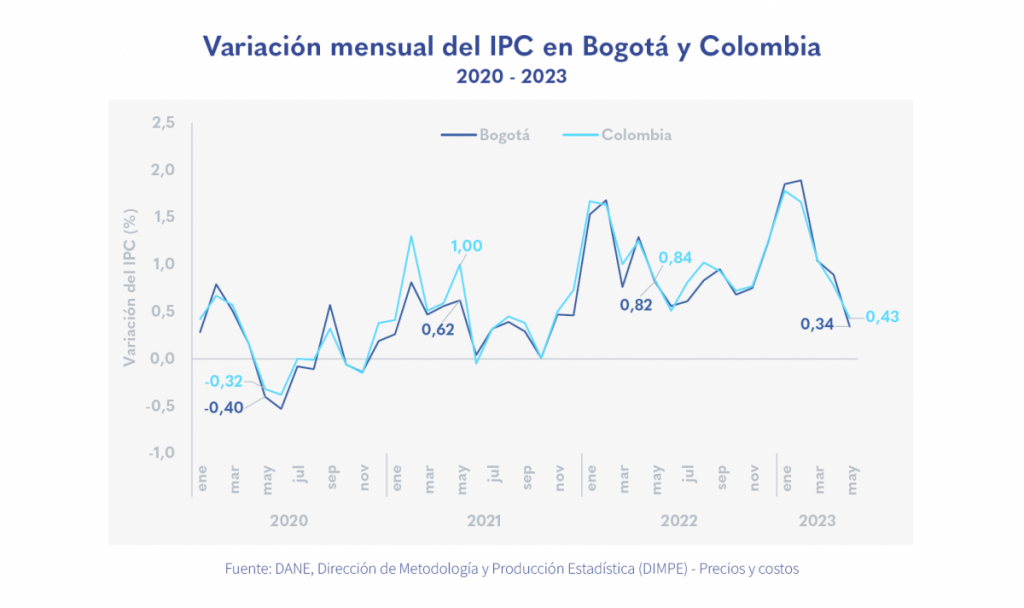 • La inflación en mayo de 2023 en la capital estuvo 9 puntos básicos (p.b.) por debajo del total nacional.