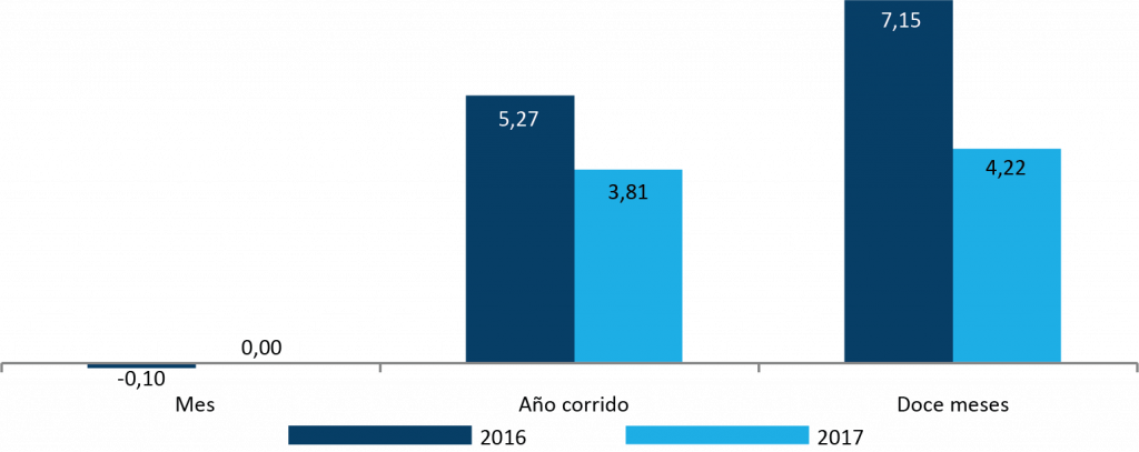 Los principales grupos de gasto que contribuyen con el resultado de la inflación de los últimos 12 meses son en su orden vivienda, alimentos, educación y transporte.