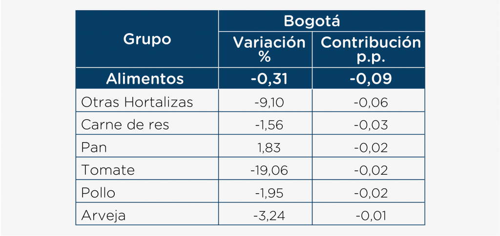 Alimentos jalona a la baja Inflación de Bogotá en el mes de octubre