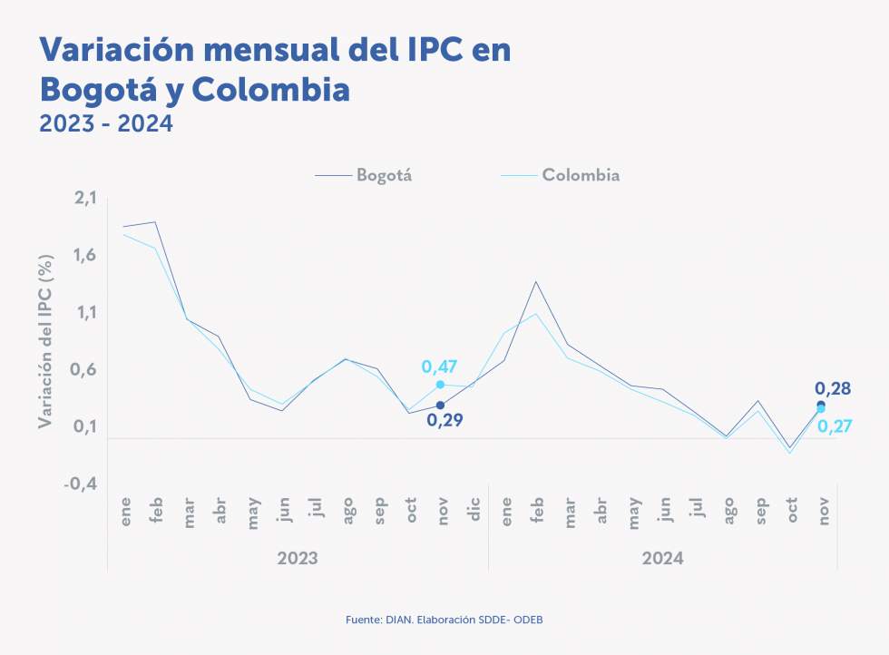 • La inflación en noviembre de 2024 fue 0,28 %, un punto básico por encima del nacional (0,27 %) y un punto por debajo del mismo periodo de 2023 (0,29 %).