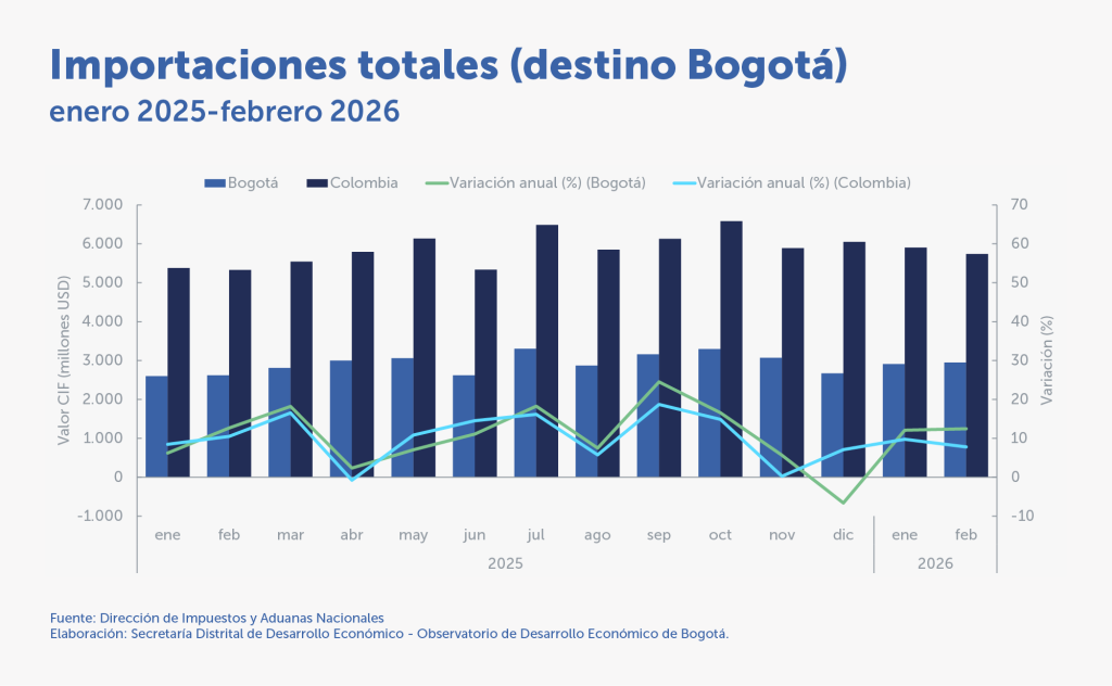 Las importaciones de manufacturas registraron un incremento anual de 12,0 %, mientras que las de bienes primarios aumentaron 27,0 % en febrero de 2026.