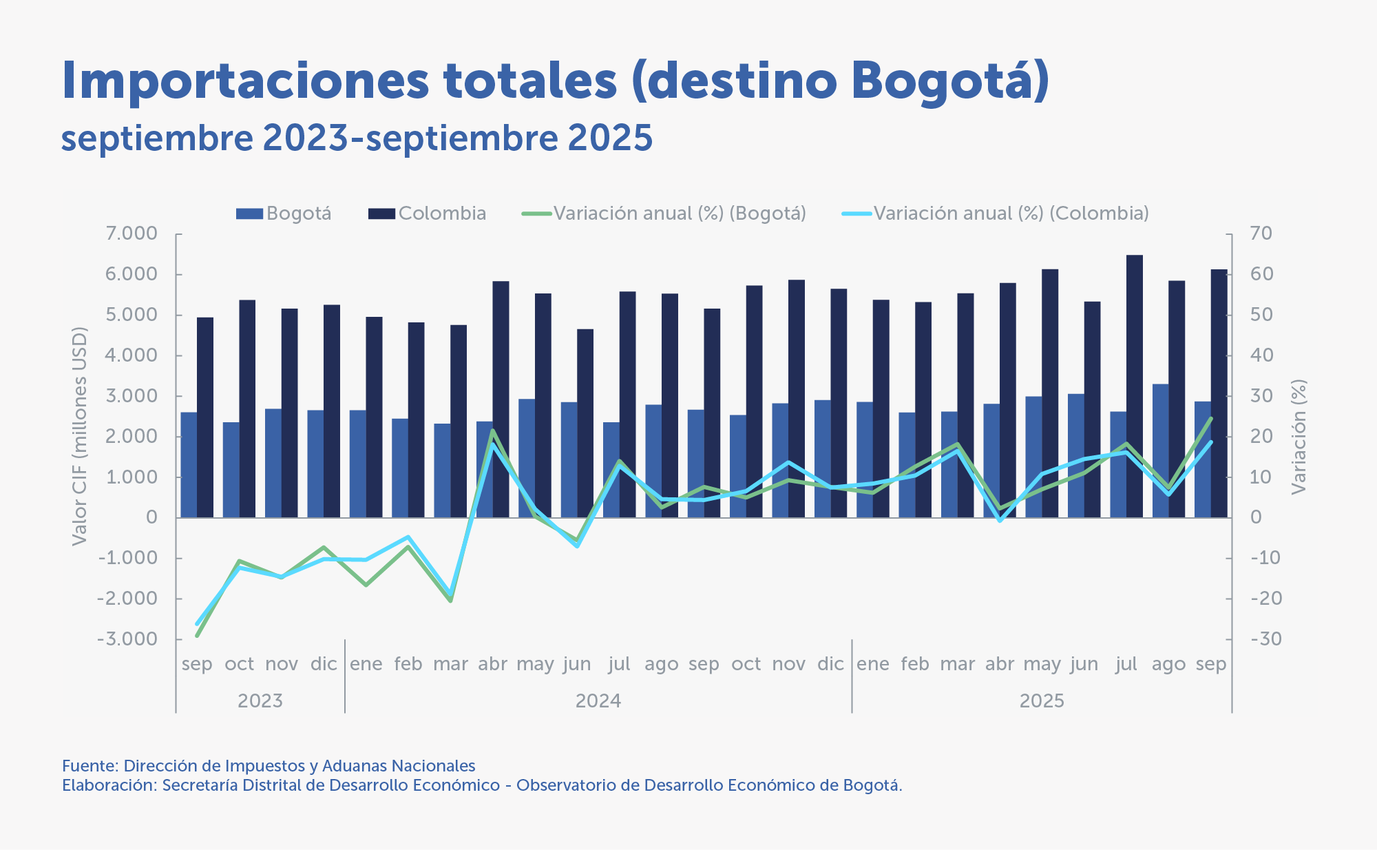 Las importaciones de Bogotá aumentaron 24,5 % en septiembre de 2025