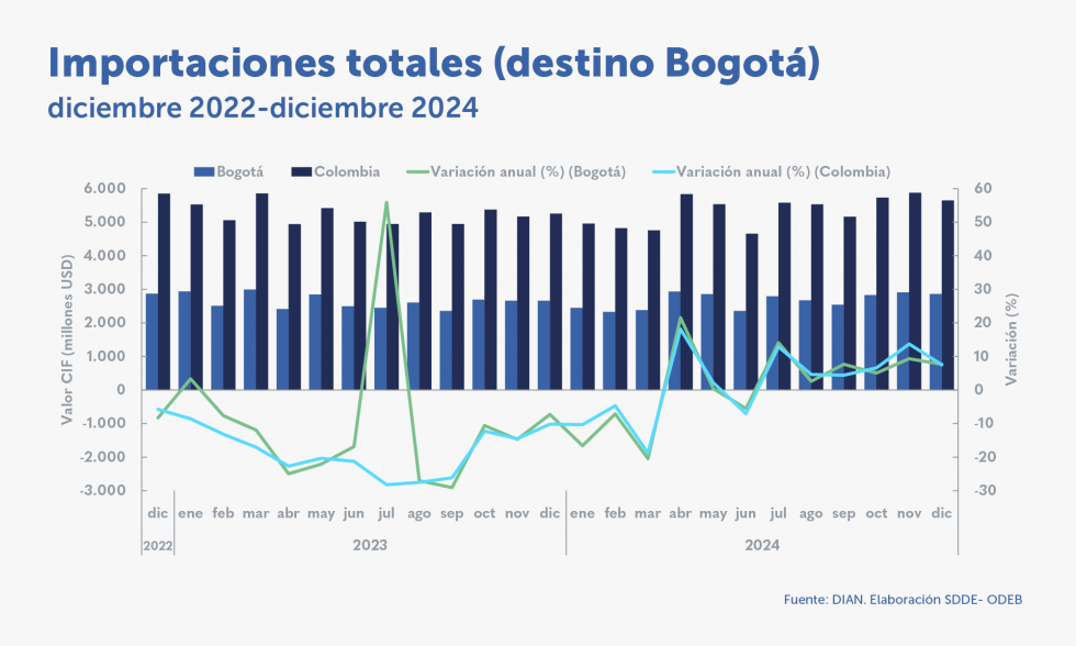 Las importaciones de manufacturas registraron un incremento anual de 3,3 %, mientras que los bienes primarios disminuyeron 15,8 % en 2024. • En 2024 se observó un crecimiento anual de 13,2 % en las compras externas de productos químicos. • Las importaciones desde China e India presentaron un aumento de 13,4 % y 22,9 % frente a 2023.