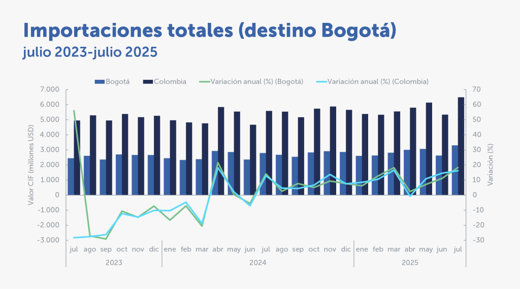 Las importaciones desde China y Estados Unidos en julio presentaron un aumento de 28,5 % y 20,5 % frente a julio de 2024.