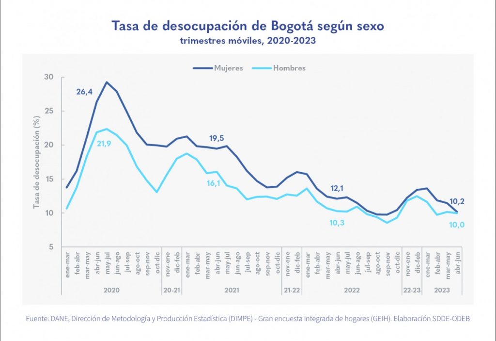 Disminuyó 1,9 p.p. la tasa de desocupación de mujeres en el trimestre abril-junio de 2023