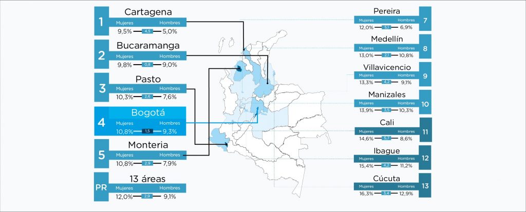 Published in: Boletines Disminuyó desempleo masculino para el trimestre móvil marzo – mayo Author Observatorio Economico Published on: 12 de septiembre de 2018 Destacados: Tasa de desocupación para mujeres Cartagena 9,5%Bucaramanga 9,8%Pasto 10,3Bogotá 10,8 Archivo de descarga: Boletín mercado laboral especial No.46 Temas: Mercado laboral especial. Tipo de Publicación: Boletines