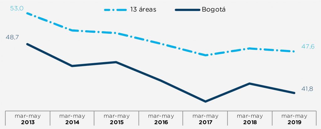 Descienden los informales en la ciudad para el trimestre móvil marzo – mayo