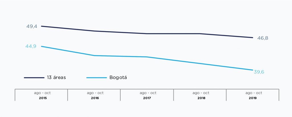 La tasa de desempleo juvenil para el trimestre móvil, agosto – octubre de 2019, fue de 15,9%